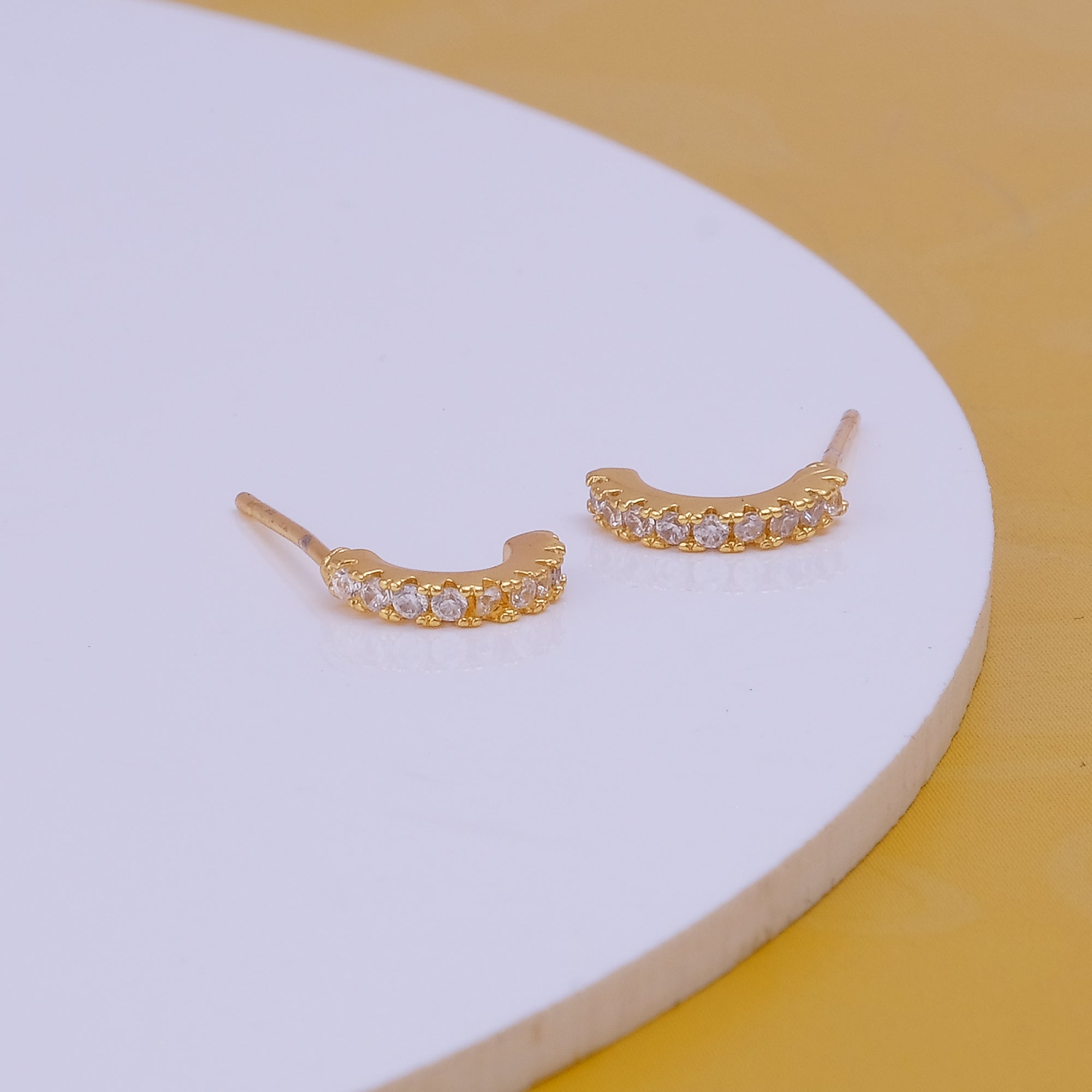 Cubic Zircon Gemstone Stud Earrings Aesthetic Half Hoop Gold Plated Jewelry For Her
